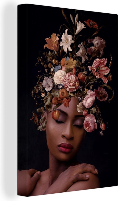 Peintures sur Toile Bouquet - Femme - Maquillage - 40x60 cm - Décoration murale