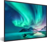Une vue sur les aurores boréales dans les Lofoten qui contraste bien avec les montagnes enneigées. Cette image s'intègre parfaitement à l'intérieur du salon ou de la chambre.Vaste collection