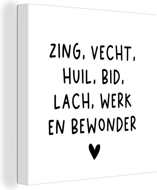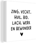 Peintures sur toile - Citations - Citation néerlandaise : « Chantez, combattez, pleurez, priez, riez, travaillez et admirez » sur fond blanc - 20x20 cm - Décoration murale
