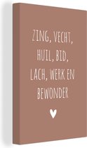 Peintures sur toile - Citations - Citation néerlandaise : « Chantez, combattez, pleurez, priez, riez, travaillez et admirez » sur fond noir - 20x30 cm - Décoration murale