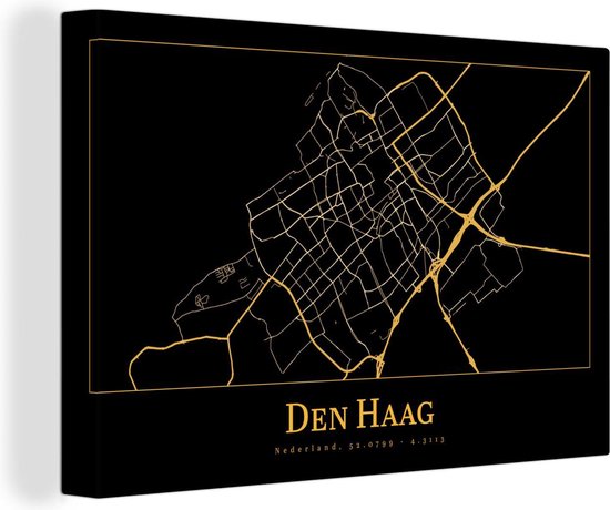 Peintures sur Toile City Map - La Haye - Or - Zwart - 120x80 cm - Décoration murale