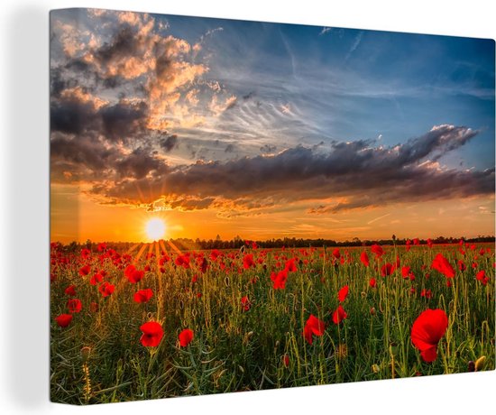 Peintures sur toile Coquelicots - Fleurs - Soleil - 90x60 cm - Décoration murale
