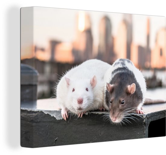 Peintures sur toile - Deux rats sur le quai - 40x30 cm - Décoration murale