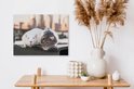 La photo est imprimée sur une toile robuste de 260 grammes de 0,41 mm d'épaisseur. Le lin est tendu étroitement sur un cadre en bois de deux centimètres d'épaisseur. Ce cadre en bois est en bois de pin certifié PEFC de qualité. Un système de suspension peut être commandé en option avec le produit pour fixer facilement l'impression au mur.