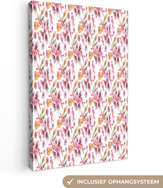 Peintures sur Toile Fleurs - Rose - Couleurs - Aquarelle - 20x30 cm - Décoration murale