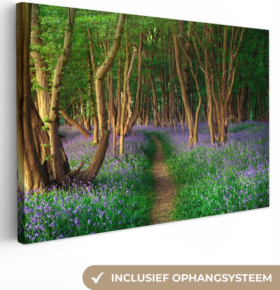 Peintures sur toile - Forêt - Chemin - Fleurs - 150x100 cm - Décoration murale