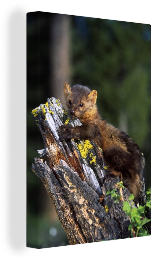La martre sauvage se dresse sur un tronc d'arbre dans la forêt.Vaste collection