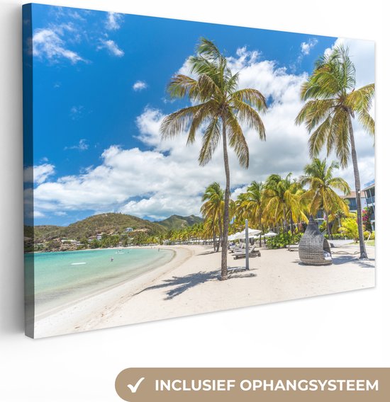 Peintures sur Toile Plage - Chaise Longue - Palmiers - 120x80 cm - Décoration murale