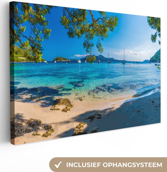 Peintures sur toile - Plage - Mer - Bateau - Majorque - 120x80 cm - Décoration murale
