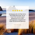 La photo est imprimée sur une toile robuste de 260 grammes de 0,41 mm d'épaisseur. Le lin est tendu étroitement sur un cadre en bois de deux centimètres d'épaisseur. Ce cadre en bois est en bois de pin certifié PEFC de qualité. Un système de suspension peut être commandé en option avec le produit pour fixer facilement l'impression au mur.