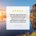 La photo est imprimée sur une toile robuste de 260 grammes de 0,41 mm d'épaisseur. Le lin est tendu étroitement sur un cadre en bois de deux centimètres d'épaisseur. Ce cadre en bois est en bois de pin certifié PEFC de qualité. Un système de suspension peut être commandé en option avec le produit pour fixer facilement l'impression au mur.