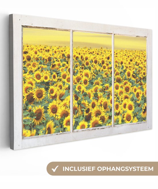 Champ jaune plein de tournesols 140x90 cm - Tirage photo sur toile (Décoration murale salon / chambre) / Peintures Fleurs sur toile