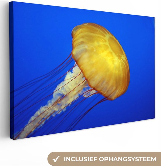 Peintures sur toile - Une grande méduse jaune - 180x120 cm - Décoration murale XXL /