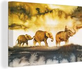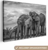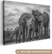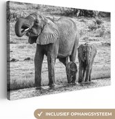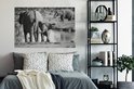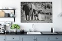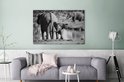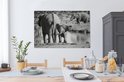 Peintures sur toile - Veau d'éléphant au bord de l'eau (noir/blanc) - 120x80 cm - Décoration murale