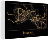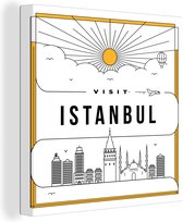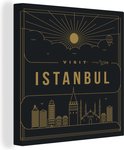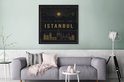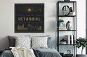 Une illustration de la vue de la ville d'Istanbul est représentée en or sur fond noir. Les lignes dorées se détachent clairement sur le fond sombre. Au centre de l'illustration, le texte «Visit Istanbul» est écrit en grosses lettres dorées. Cette image prend tout son sens dans le salon.Vaste collection