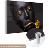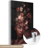Peintures sur verre - Femme - Fleurs - Zwart - 100x150 cm - Peintures Plexiglas