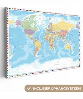Peintures Toile Wereldkaart - Couleurs - Drapeau - 40x30 cm - Décoration murale