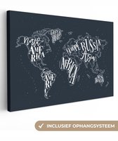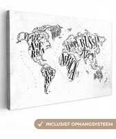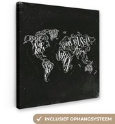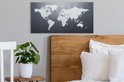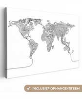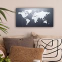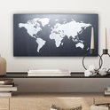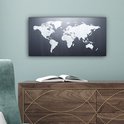 Peintures Toile Wereldkaart - Simple - Zwart - Wit - 40x20 cm - Décoration murale