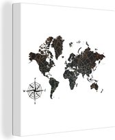 Peintures Toile Wereldkaart - Zwart - Bois - 50x50 cm - Décoration murale