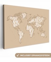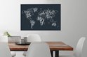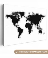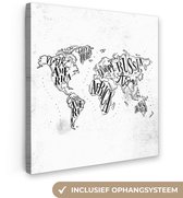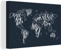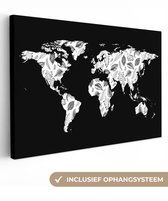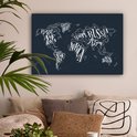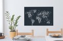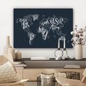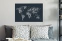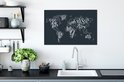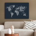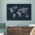 Peintures Toile Wereldkaart - Zwart - Wit - Lettres - 60x40 cm - Décoration murale