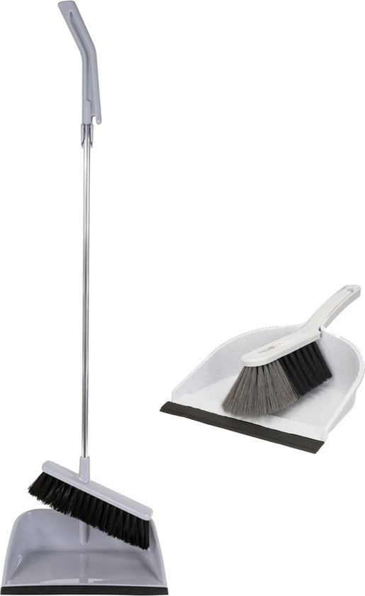 Ensemble combiné Trendoz de 2 types de pelle à poussière, longue et courte. 1x pelle à poussière en plastique et pelle à poussière avec manche de 90 cm de long gris et 1x ensemble pelle à poussière/poussière en plastique Softgrip 23 x 36 cm gris clair. L'article à long manche a une boîte de 23 x 23 x 10 cm. Articles ménagers / de nettoyage pelle à poussière et peut nettoyer les articles.