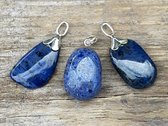 Pendentif de santé Dumortiérite. Pendentif en pierres précieuses, sur une carte d'affichage avec chaîne jetable.