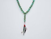 Pendentif de voiture en pierre naturelle fait main "Quartz vert" - Avec pendentif en métal "Palestine" - Diamètre du grain 8 mm - Bel accessoire et décoration pour la voiture