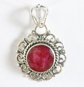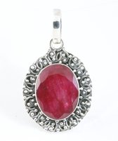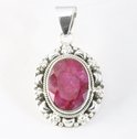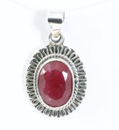 Pendentif en argent ovale fait à la main et décoré d'une belle pierre de rubis à facettes. La teneur en argent est de 925.