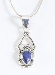 Pendentif fin en argent ajouré avec lapis lazuli sur chaîne