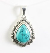 Pendentif rond en argent avec turquoise