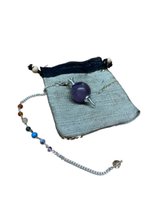 Pendule avec améthyste ronde et un collier avec 7 pierres précieuses chakras mineurs - avec pochette en tissu sari gratuite - Pendule