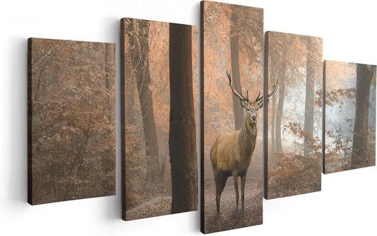 Pentaptyque Artaza - Peinture sur toile - Cerf dans la forêt - Automne - 100x50 - Photo sur toile - Impression sur toile