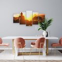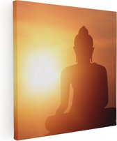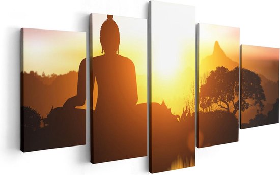 Pentaptyque Artaza - Peinture sur toile - Silhouette de statue de Bouddha avec coucher de soleil - 100x50 - Photo sur toile - Impression sur toile