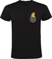 Perruche jaune dans la poche de poitrine T-shirt homme | drôle| mignon| oiseau | animal préféré| tête d'oiseau | curieuse | mignonne| perruche | oiseau |