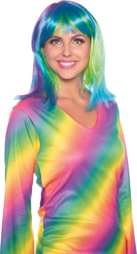 Perruque Longue Bob Neon Rainbow