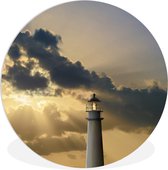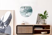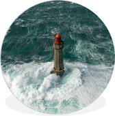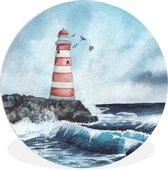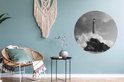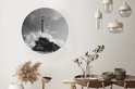 Phare avec vagues sauvages - feuille de plastique cercle mur carré noir et blanc