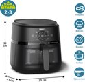 Le design compact est idéal pour n’importe quelle cuisine, grande ou petite. Peut contenir 800 g de frites, 8 pilons de poulet ou 800 g de légumes dans une poêle de 6,2 litres.