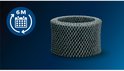 Le filtre blanc précédent était en coton et ne durait que trois mois. Le nouveau filtre noir contient du carbone (carbone) et dure deux fois plus longtemps maintenant, donc six mois. Avant utilisation, placez le filtre dans un bol d'eau pendant une demi-heure à une heure et placez-le ensuite seulement dans un humidificateur. Philips recommande de nettoyer le filtre chaque semaine dans un bol d'eau additionnée d'une solution d'agrumes. Nous utilisons la petite bouteille d'agrumes bien connue du supermarché (pour la cuisson) et vidons une demi-bouteille dans un bol d'eau. Cela fonctionne très bien et une telle bouteille coûte environ 50 cents, donc ce n'est pas le prix. Ce filtre noir est nettement meilleur que le précédent et le prix est resté le même.