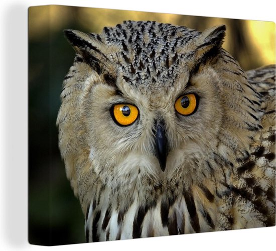 Photo d'une toile européenne hibou grand-duc d'Asie 160x120 cm - Tirage photo sur toile (Décoration murale salon / chambre) XXL / Groot format!