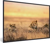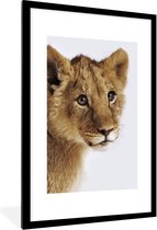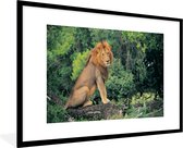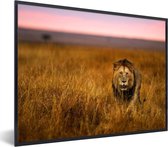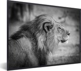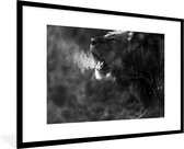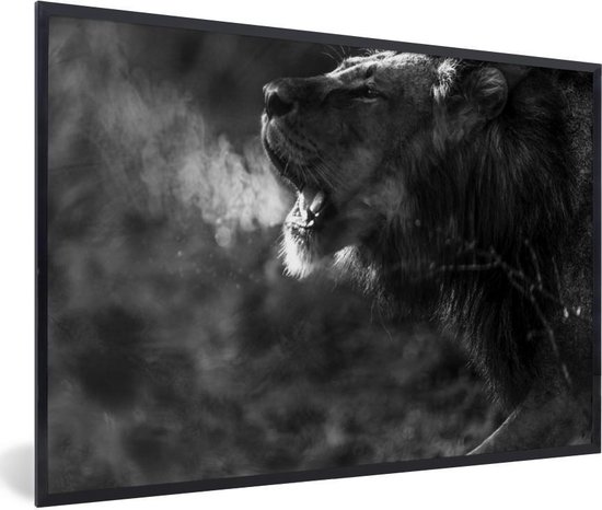 Photo dans le cadre - Cadre photo lion rugissant noir sans passe-partout 120x80 cm - Affiche sous cadre (Décoration murale salon / chambre)