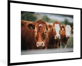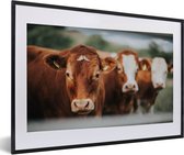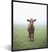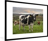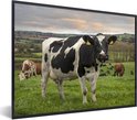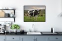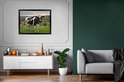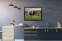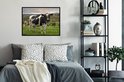 Photo dans le cadre - Vache avec étiquettes d'oreille dans le champ d'herbe Cadre photo noir sans passe partout 80x60 cm - Affiche dans le cadre (Décoration murale salon / chambre)
