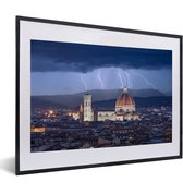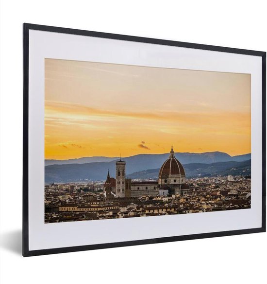 Photo dans le cadre - Vue de Florence avec le Dom de Florence et un beau coucher de soleil en Italie Cadre photo noir avec passe-partout blanc petit 40x30 cm - Affiche dans le cadre (Décoration murale salon / chambre)