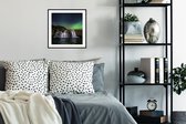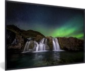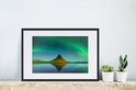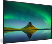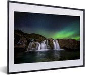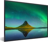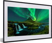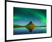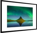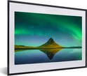 Photo en cadre - Aurores boréales au-dessus de la montagne Kirkjufell en Islande cadre photo noir avec passe partout blanc 40x60 60x40 cm - Affiche sous cadre (Décoration murale salon / chambre)