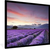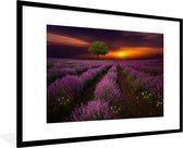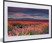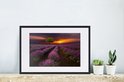 Photo en cadre - Beau champ de lavande par une soirée sombre avec cadre photo coucher de soleil noir avec passe-partout blanc 60x40 cm - Affiche sous cadre (Décoration murale salon / chambre)