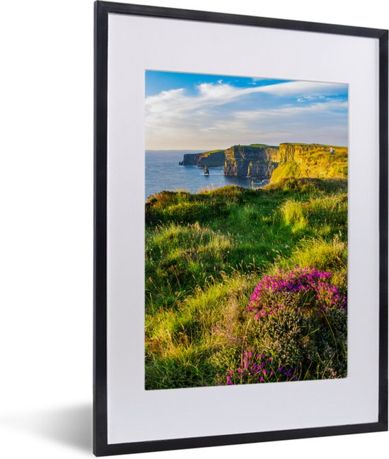 Photo en cadre - Fleurs irlandaises sur les falaises de Moher Cadre photo noir avec passe-partout blanc petit 30x40 cm - Affiche sous cadre (Décoration murale salon / chambre)