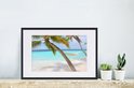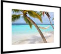 Photo en cadre - Hamac près de deux palmiers aux Maldives cadre photo noir avec passe-partout blanc 60x40 cm - Affiche sous cadre (Décoration murale salon / chambre) / Mer et plage