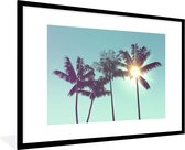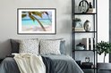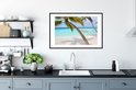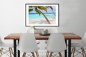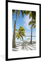 Photo en cadre - Hamac près de deux palmiers aux Maldives cadre photo noir avec passe-partout blanc grand 90x60 cm - Affiche sous cadre (Décoration murale salon / chambre) / Mer et plage