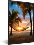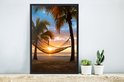 Photo en cadre - Iles des Caraïbes avec une plage et un hamac cadre photo noir 40x60 cm - Affiche sous cadre (Décoration murale salon / chambre) / Mer et plage