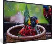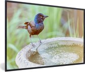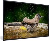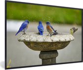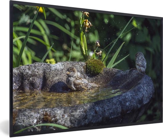 Photo en cadre - Jeunes moineaux dans un bain d'oiseaux par une chaude journée d'été Cadre photo noir sans passe-partout 30x20 cm - Affiche sous cadre (Décoration murale salon / chambre)