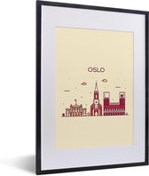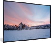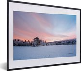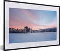 Photo en cadre - Le paysage d'hiver au cadre photo norvégien Oslo noir avec passe-partout blanc 60x40 cm - Affiche sous cadre (Décoration murale salon / chambre)